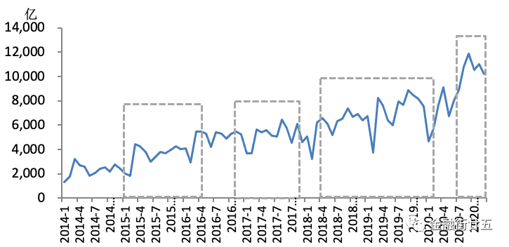 1.违约潮同期均为央行货币政策由松转紧之后,且非金融企业信用债到期量较前期明显上台阶。由于前期货币宽松,企业因资金成本降低而过度借债加杠杆,在货币政策收紧时期,企业债务接续难度上升,融资环境恶化,加之债券大量到期,导致违约事件频发。