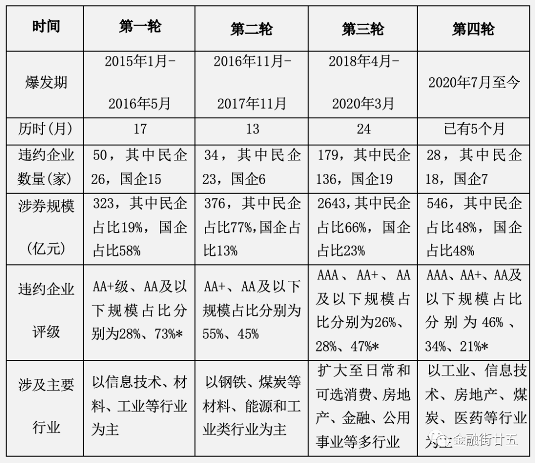 我国四轮债券违约潮的特征变化呈现出四大特点: